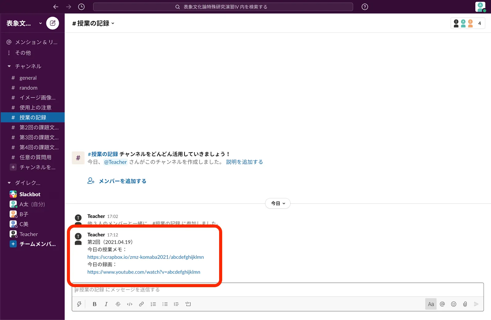 詳細は「Slackで学生とコミュニケーションを取る方法」も確認してください.