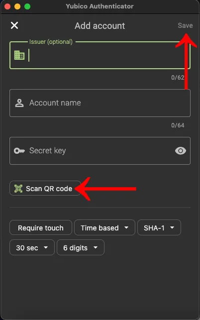 Adding an account to Yubico Authenticator